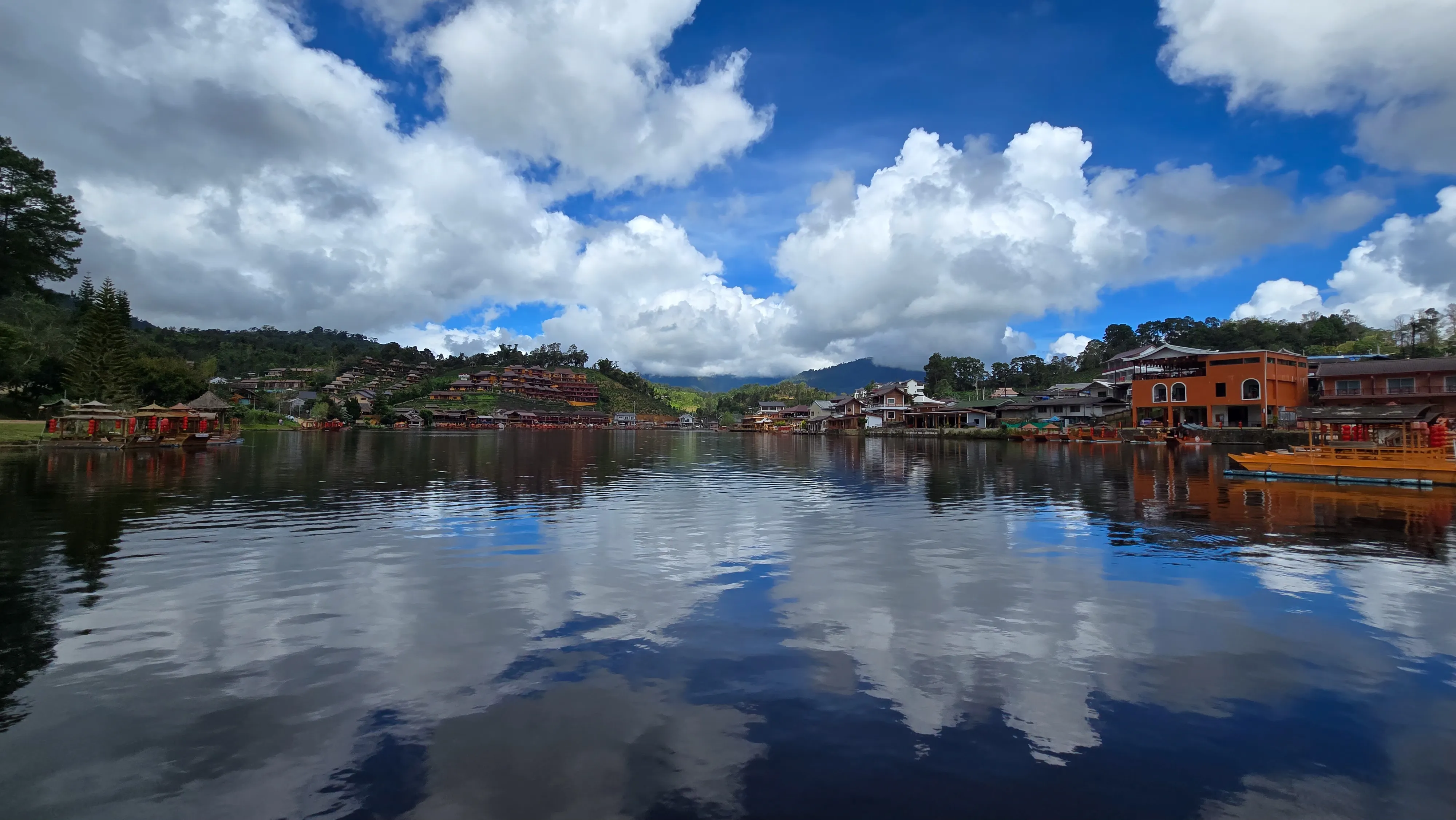 Rural farmland riding and a ferry crossing over the Sirikit Dam reservoir.