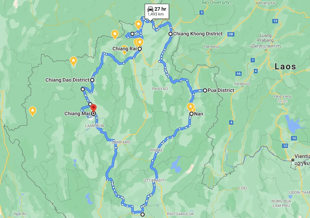 Covering 1,860 kilometres and more than 7,000 curves, this journey connects Chiang Mai, Chiang Dao, Chiang Rai, Chiang Khong, Pua, Nan and the UNESCO World Heritage city of Sukhothai — the ancient capital of Siam.